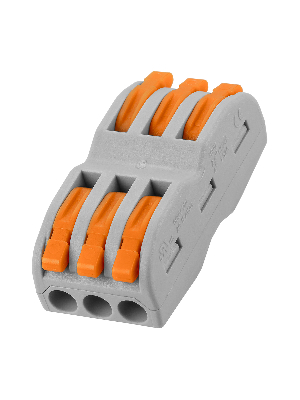 Соединительная клемма серии СК позволяет присоединять и разветвлять одножильные проводники сечением от 0,1 мм2 до 2,5 мм2 и многожильные проводники сечением от 0,1 мм2 до 4 мм2. Перед монтажом необходимо зачистить проводник от изоляции и зафиксировать в монтажном гнезде клеммы при помощи откидного рычажка.