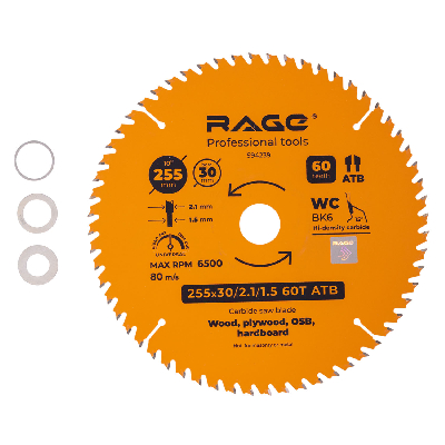 Диск пильный универсальный 255 мм 60 зубьев посадка 30 мм + кольцо 25.4/20/16 мм
