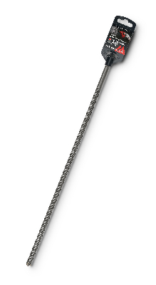 Бур предназначен для ударного сверления перфораторами SDS-plus бетона, железобетона, пустотелого кирпича, камня и других не хрупких минеральных общестроительных материалов. Применяется для сверления сквозных отверстий при прокладке электрических коммуникаций. Тело бура изготовлено из инструментальной стали марки 40Х. Оптимальная закалка тела бура до твердости 38-40HRC позволяет сочетать высокую упругость с достаточной ударной вязкостью, позволяющей при хорошей передаче удара бойка избежать преждевременной поломки. Х-образная твердосплавная напайка из карбида вольфрама марки ВК-8 твердостью 89-91HRA уменьшает вероятность заклинивания и поломки бура при попадании в арматуру по касательной. Бур имеет более высокий ресурс по сравнению с бурами с плоскими напайками. 4 отдельные спирали обеспечивают необходимый отвод шлама из отверстия для оптимальной производительности сверления.