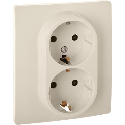 Розетка двойная с заземлением, с защитными шторками для скрытого монтажа Inspiria, цвет Слоновая кость, максимальный ток 16А, напряжение 250В, максимальная мощность 3680Вт, винтовые зажимы. Применяется для присоединения однофазных электрических потребителей к сети переменного тока в зданиях с проводкой с заземлением (с защитным проводником). Позволяет компактно разместить две розетки в одном установочном месте.
