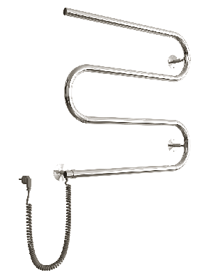 Электрический полотенцесушитель-змеевик. Простой и бюджетный вариант электрического полотенцесушителя в ванную комнату. Форма полотенцесушителя говорит об отсутствии сварных швов, одновременно простоте и надежности этого полотенцесушителя.