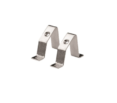 Зажимы применяются для фиксирования модульной аппаратуры и клеммных зажимов на DIN-рейке. Кронштейны для установки DIN-рейки позволяют установить рейку с отступом от монтажной платы, что дает возможность провести провода за DIN-рейкой. Кронштейн для установки DIN-рейки под углом позволяет установить клеммные зажимы под углом, что облегчает подведение к ним проводников. Изготовлены из оцинкованной стали.